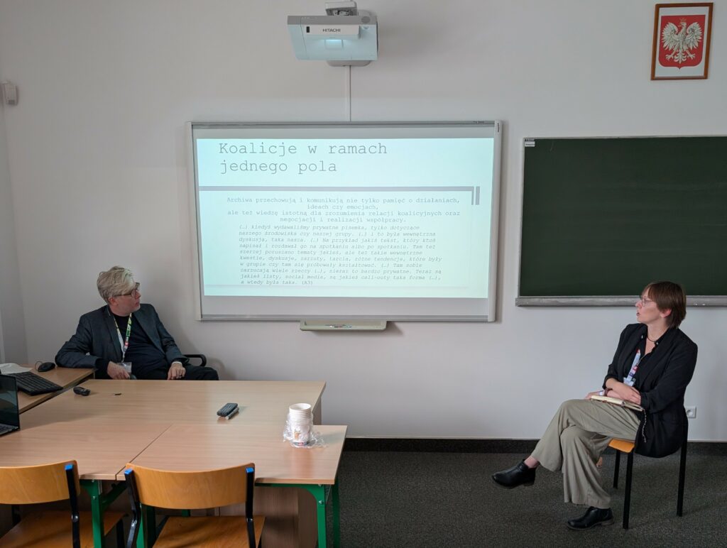 Dr. Isabela Kujawa and prof. Maciej Kowalewski presented a paper titled: „Farewell to coalitions? Contemporary Social Movements in the Perspective of Archival Practices in Poland and Germany” as part of thematic group centred around: Social movements in the era of polycrisis. In their presentation they focused on the role of protest archives in creating coalitions, discussing how people organizing or managing the protest archives are involved in cooperation between the movements.